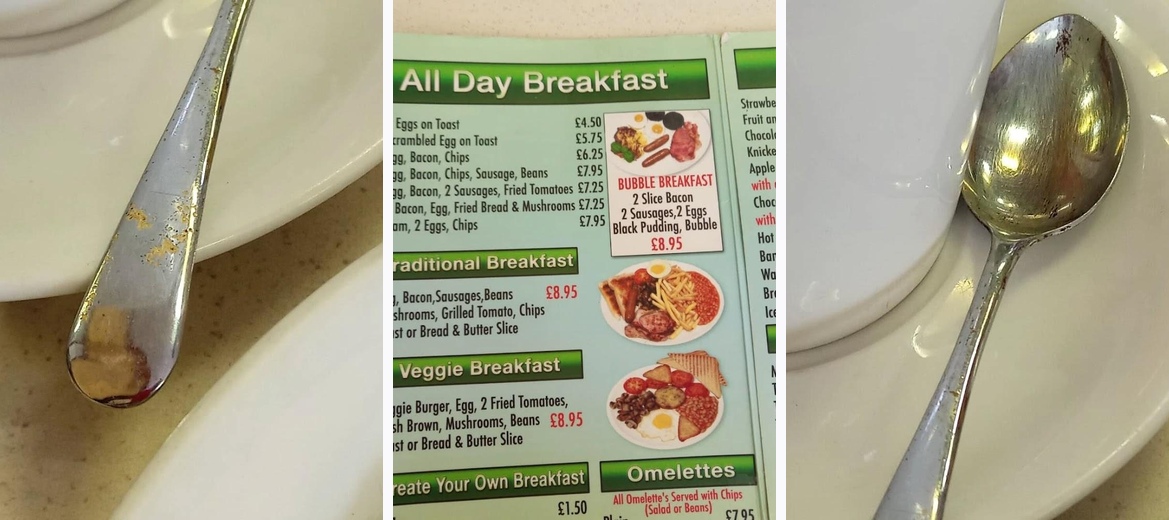 There are not many greasy spoons in Coulsdon and this was one of the few. While the beans and bacon were enjoyable the sausages had an unusual color and texture. The cafe's cleanliness was questionable because the spoon was quite grubby. You could literally bend their metal forks as well.